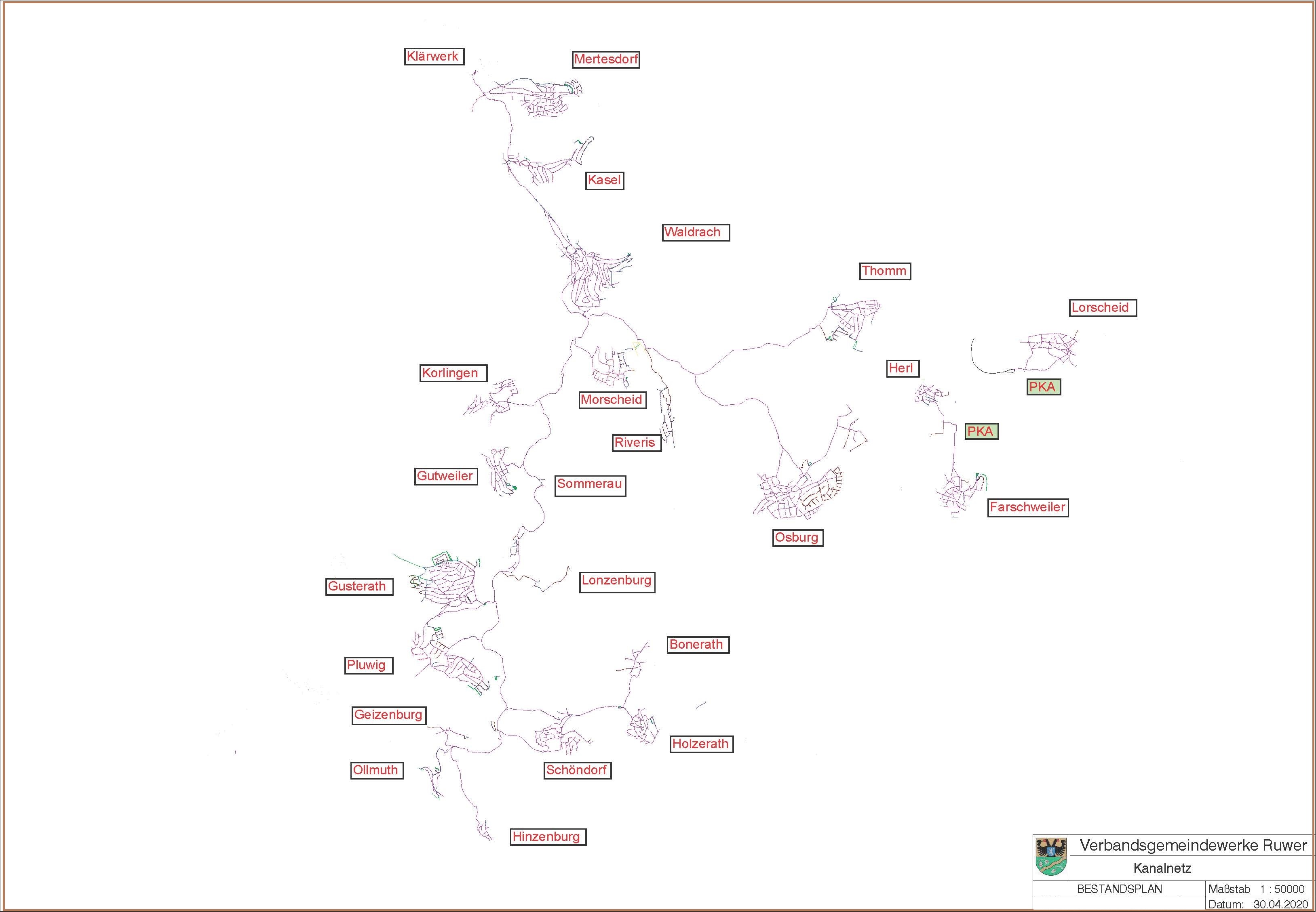 - rd. 135 km Ortskanalisation